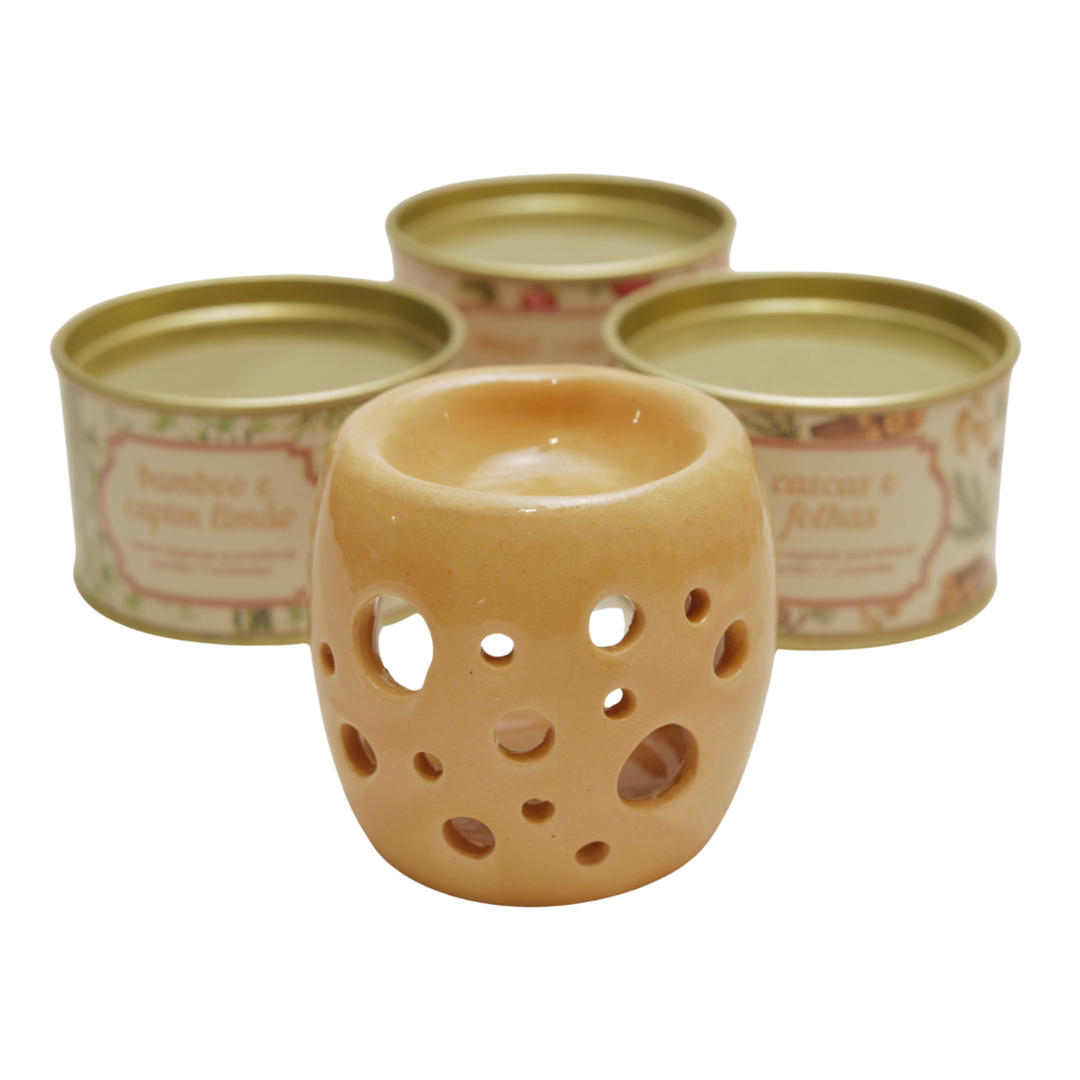 1 difusor modelo rechaud + 1 lata com 7 ceras aromáticas